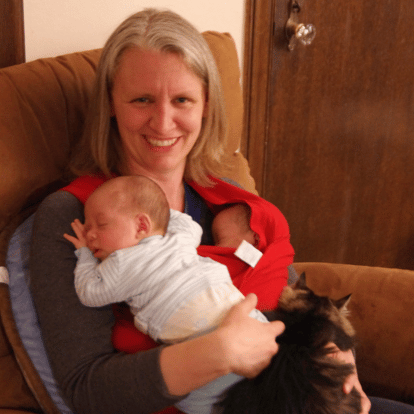 And yes, those are two babies in the photo plus one cat who couldn't be left out of the snuggles.